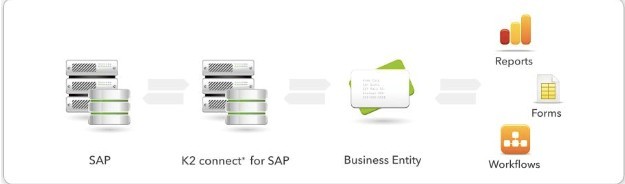 K2 SmartObjects 可以作為Web services使用,輕松跨越所有應(yīng)用程序與 代碼。 SAP實(shí)現(xiàn)集成。